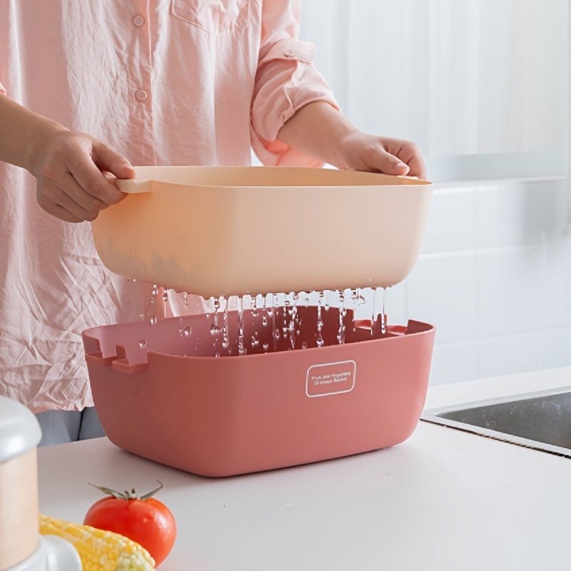 Home > 1pc 2 In 1 Multifunction Kitchen Colander; Strainer And Bowl Set; Double Layered Stackable Colander; Fruit And Vegetable Strainer; Drain Basin And Bas