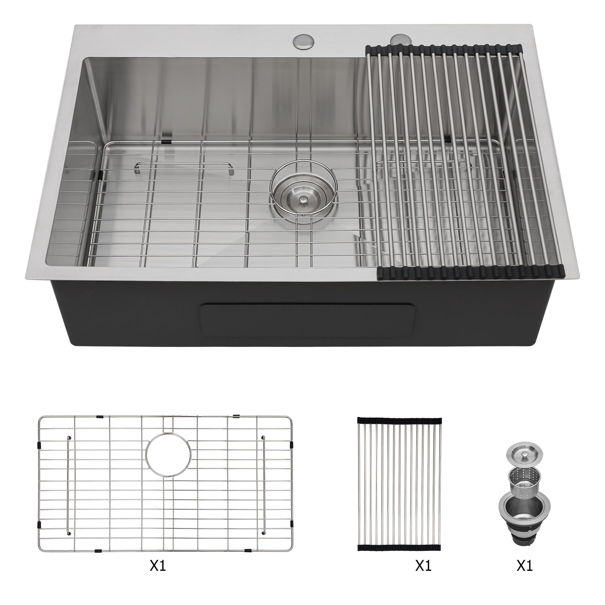 33x22 inch Kitchen Sink Drop In 16 Gauge Stainless Steel 33" Single Bowl Topmount Kitchen Sink Basin