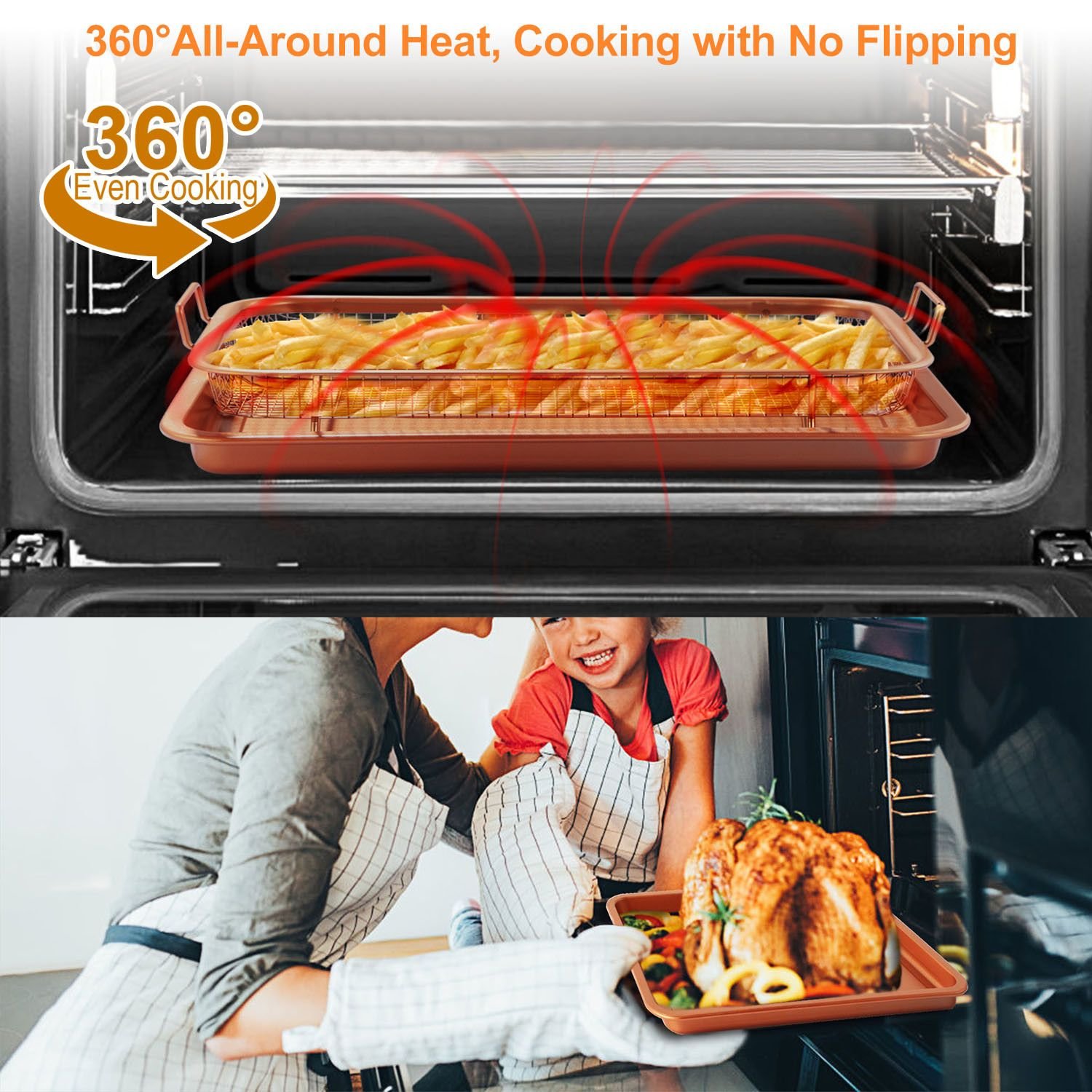 *Oven Safe and Dishwasher Safe*:Our crisper tray set can be used to stir-fry; deep-fry; roast and meantime bake in the oven(170℃). And featuring dishwasher safe; you can clean the both parts into the dish washer or wipe them with cloth.