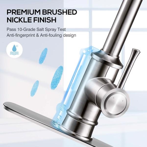 Kitchen Faucet- 3 Modes Pull Down Sprayer Kitchen Sink Faucet; Brushed Nickel Kitchen Faucet Single Handle; 1or3 Holes with Deck Plate; 100% Lead-Free Kitchen Faucet- 3 Modes Pull Down Sprayer Kitchen Sink Faucet; Brushed Nickel Kitchen Faucet Single Handle; 1or3 Holes with Deck Plate; 100% Lead-Free Kitchen Faucet- 3 Modes Pull Down Sprayer Kitchen Sink Faucet; Brushed Nickel Kitchen Faucet Single Handle; 1or3 Holes with Deck Plate; 100% Lead-Free